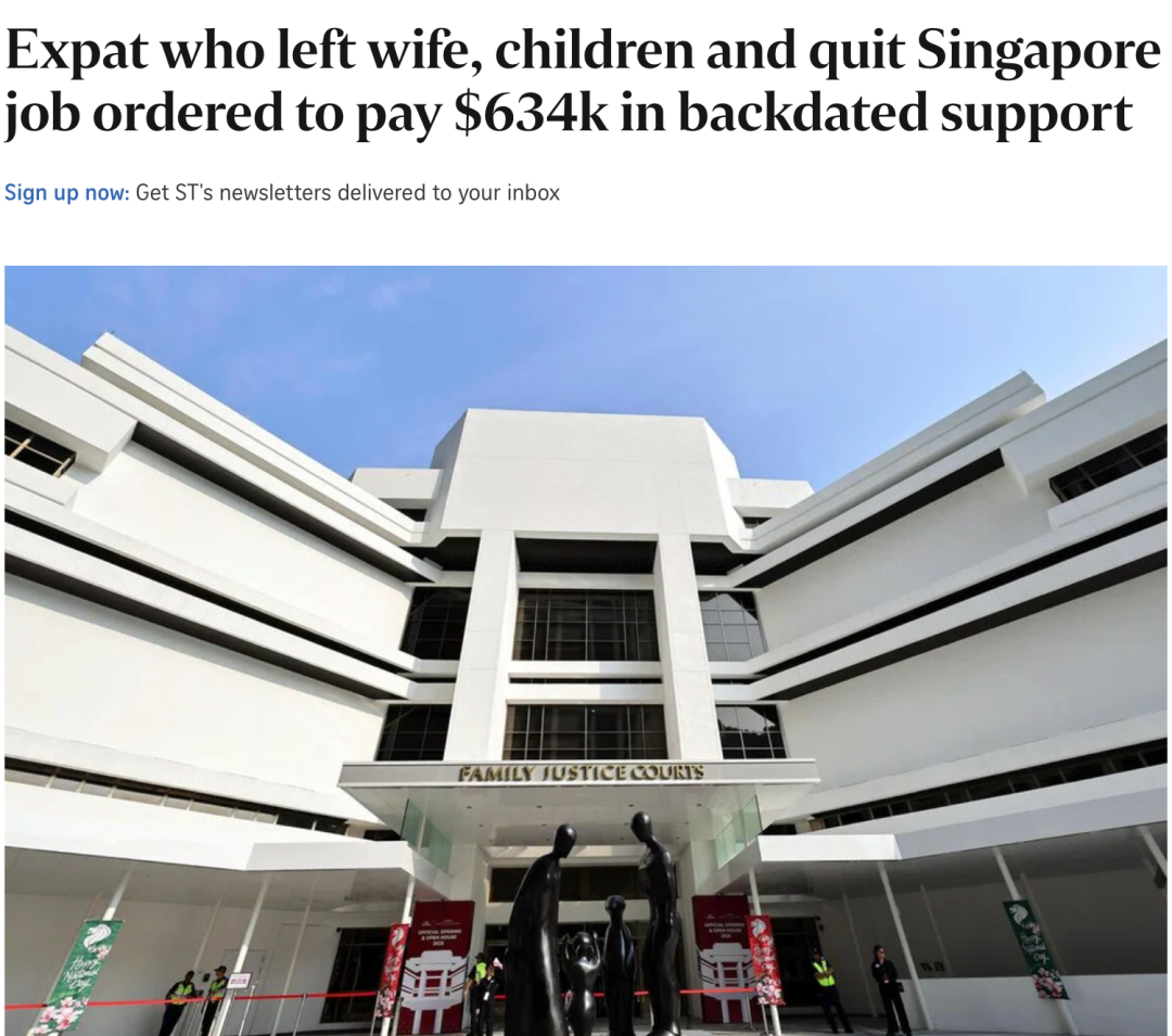 妻子很快意识到问题严重,于是2023年10月2日向新加坡家庭法院申请赡养费,希望法院出面保障自己和孩子的基本生活。