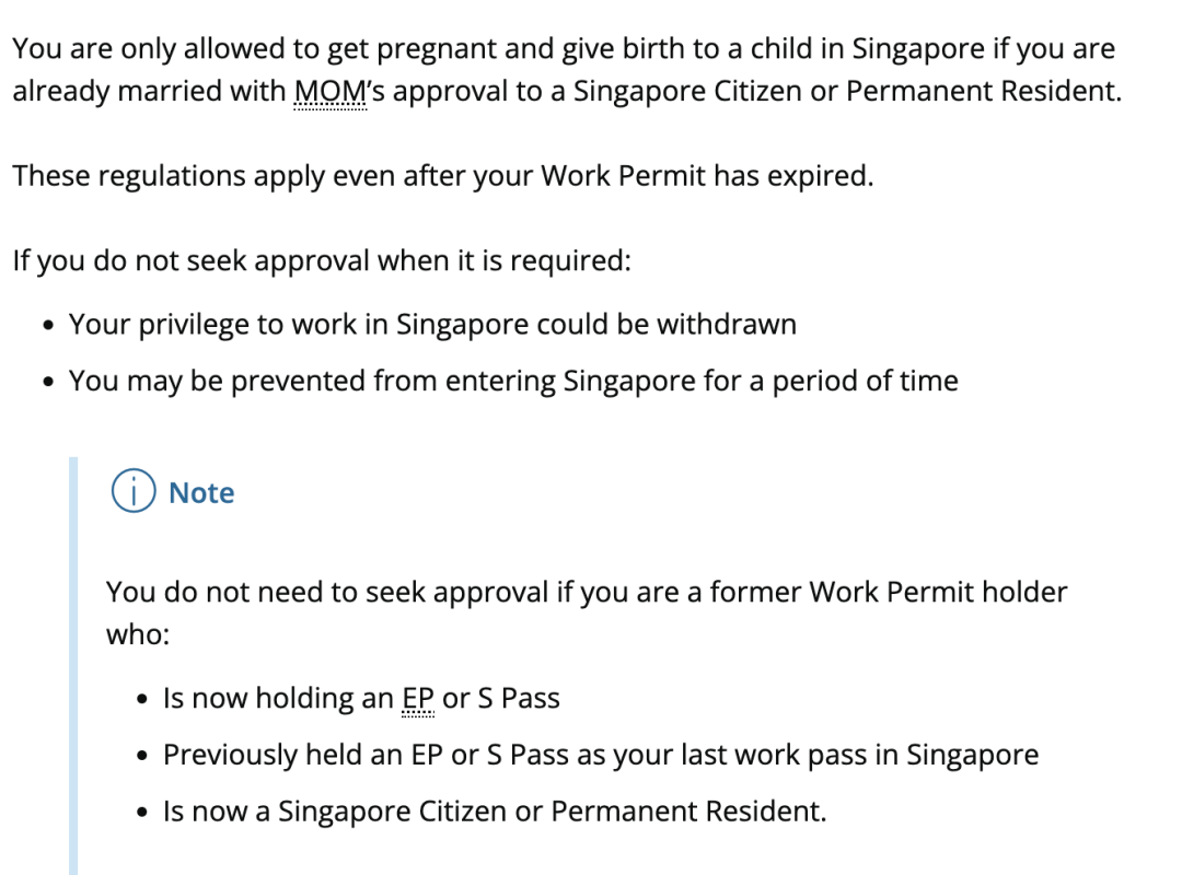 WP女性在新加坡怀孕或生孩子,除非是和新加坡公民或PR结婚并获批,否则属于严重违反准证条件。哪怕WP后来取消了,这个限制依然有效