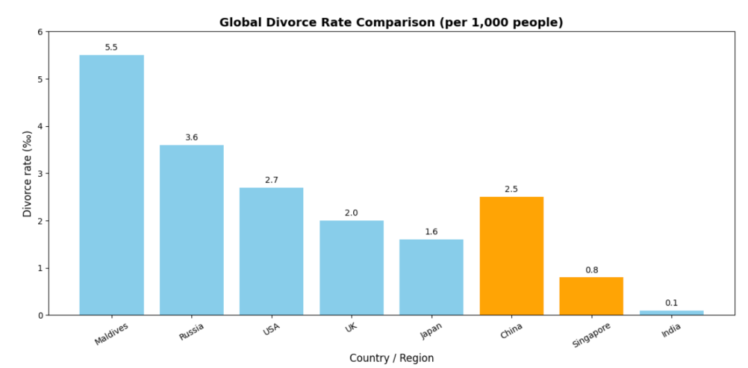 这也是为什么新加坡离婚率在全球范围内都算低水平。