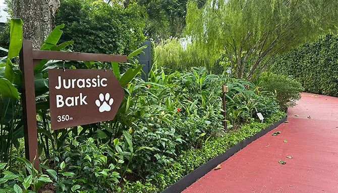 爪爸爪妈注意!樟宜机场有东南亚首个遛狗场 “Jurassic Bark”,距 Hub & Spoke 350 米、步行不足 5 分钟,200 平方米场地内狗狗可自由玩耍,还有老卡亚树改造的原木长凳供主人休憩。