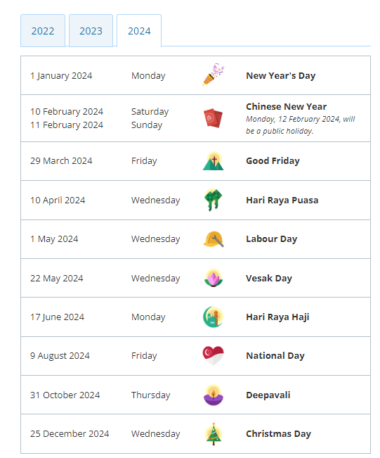 https://www.mom.gov.sg/employment-practices/public-holidays?fbclid=IwAR1s-x63-AW3LQo2qzFhqa2AB9qV3hlC3blwhBvE7TVvIV6v7nO7R74qFGA