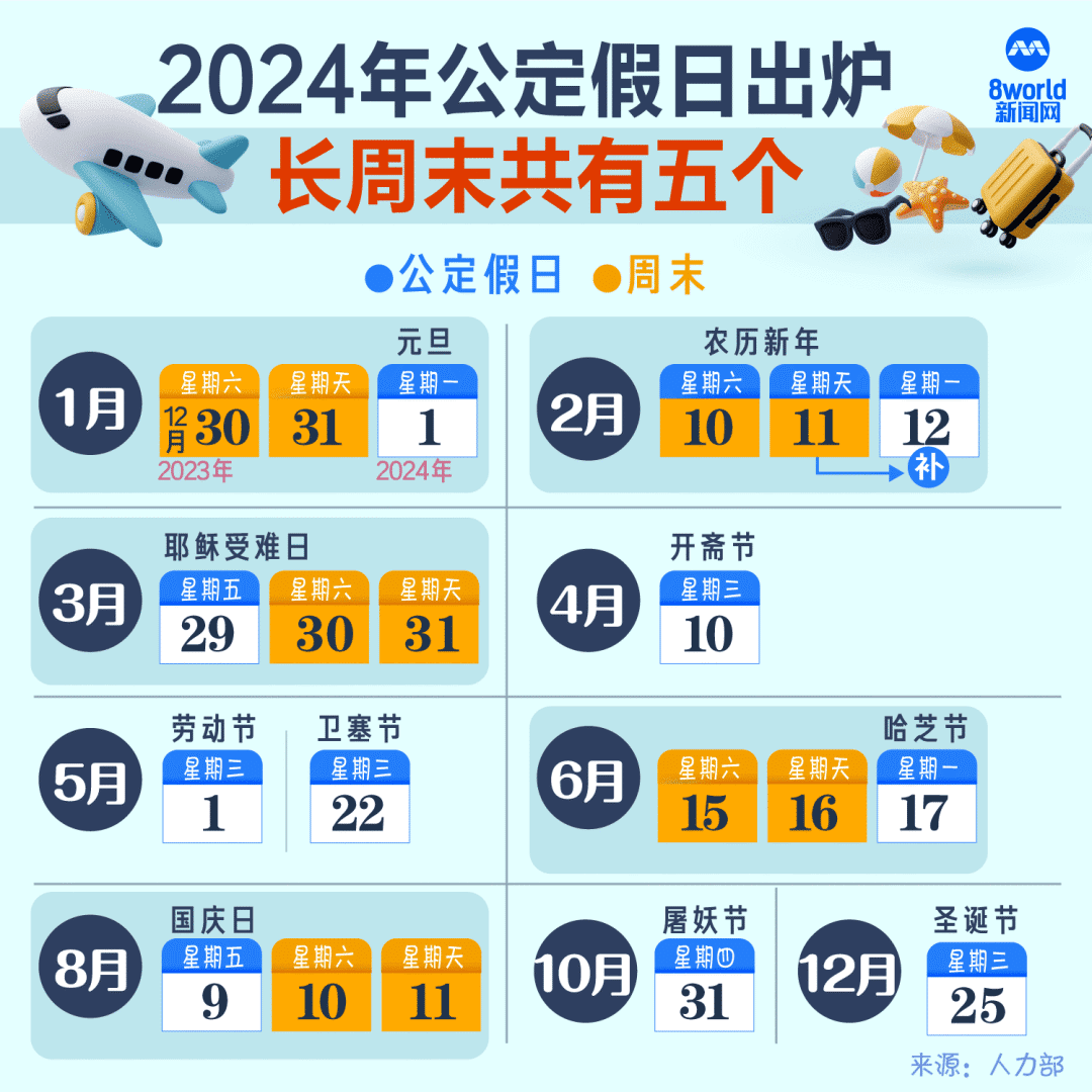 先来看看2024年公共假期表,新加坡人力部官网公布如下