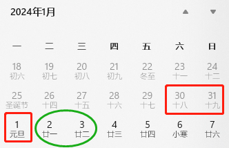 元旦小长假2023年12月30日-2024年1月1日+请2天=5天小长假