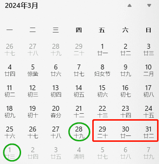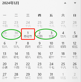 ⑤5月可请4月29-30日(周一二)、5月2-3日(周四五)