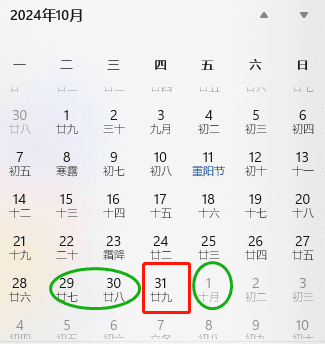 10月27-28日周末+屠妖节假10月31日+请3天+周末=8天小长假