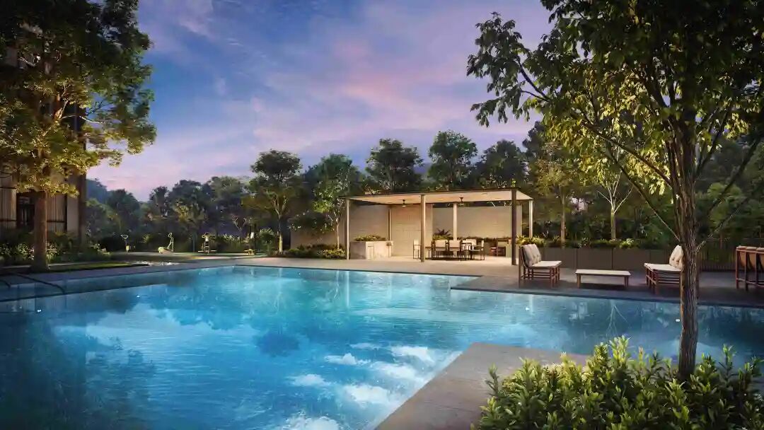 健康与可持续设计:The Sen的设计理念源自热带度假村与健康休闲度假地,园区内绿意盎然,反射水池和瀑布景观打造出宁静的氛围,项目还力求获得BCA Green Mark Platinum(超低能耗)认证,确保环保和节能。