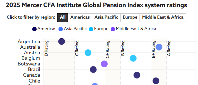 10月15日发布的 2025 Mercer–CFA 全球养老金指数,