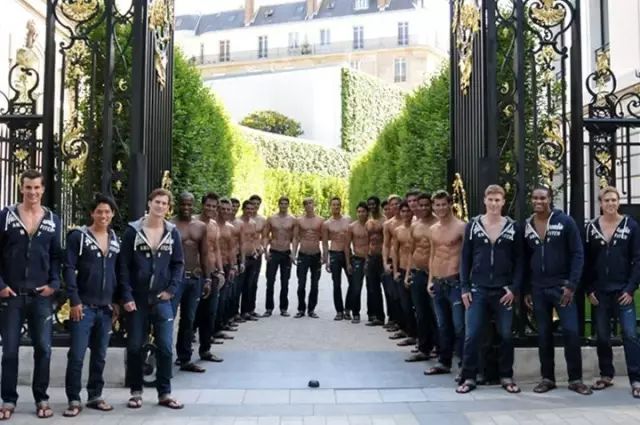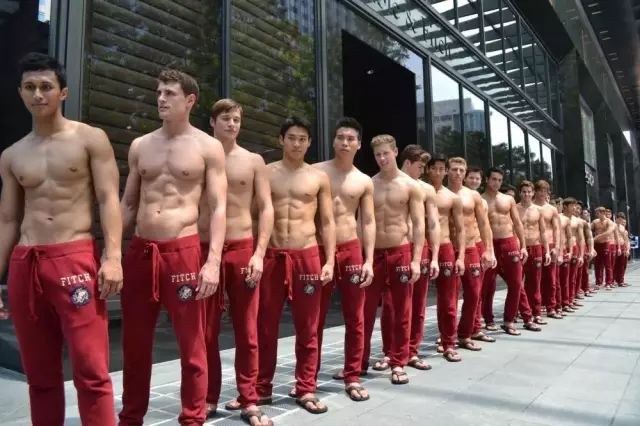 几十个高颜值半裸男模一字排开,满眼的腹肌和胸肌,视觉冲击力太强。