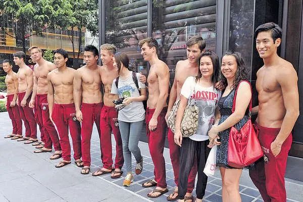 新加坡开业时候,门口的半裸男模可以说是相当国际化。