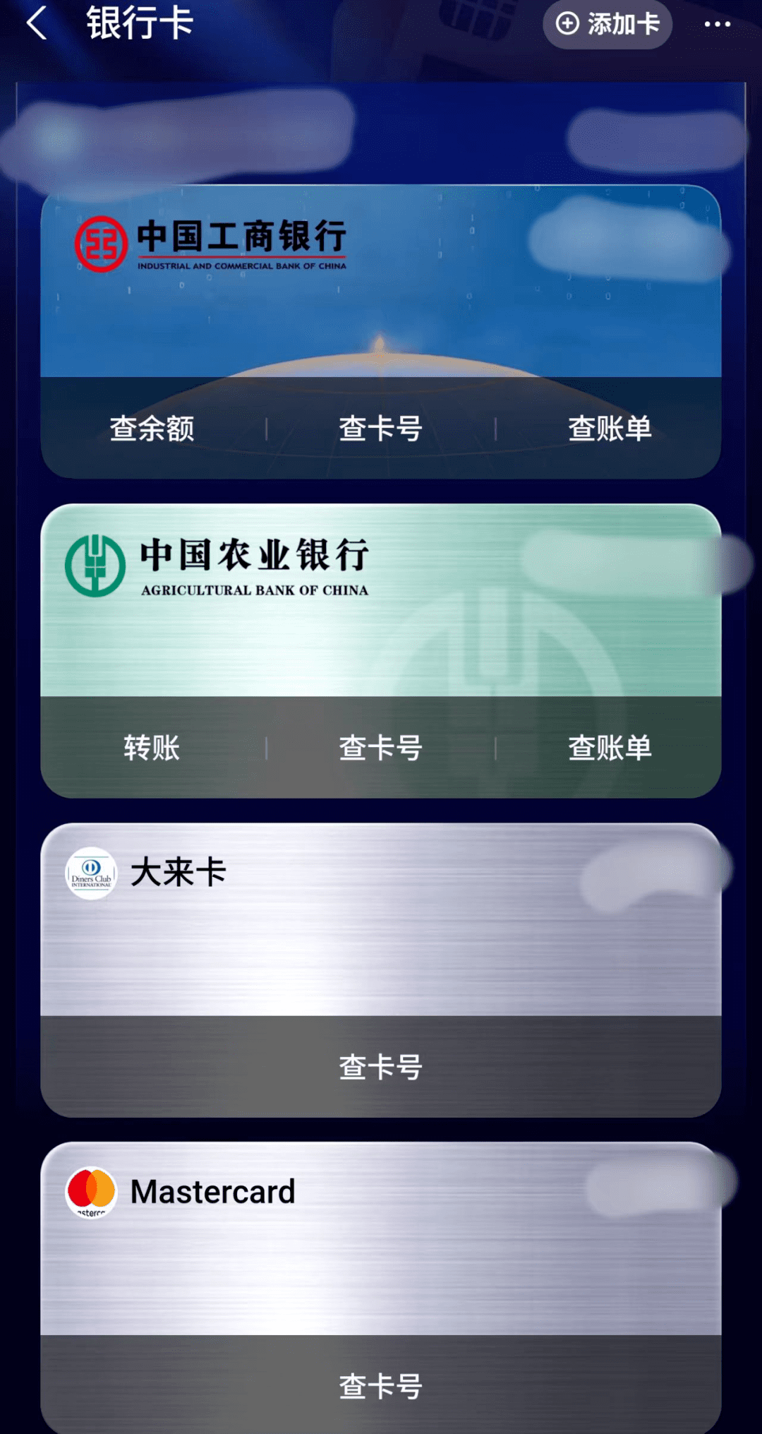 在「钱包」内,点击「银行卡」>「添加银行卡」,进入身份信息填写及绑定外卡流程。
