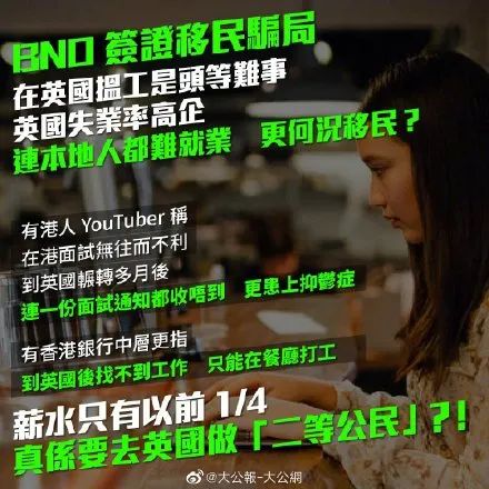 人家英国把当地白人当一等公民,东欧白人当二等公民,而想去那边填补劳动力市场空缺的港人的地位,可是要排在政治正确的黑人和印巴人之后哟~