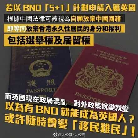 毕竟从1月31日起,中国不再承认BNO护照了,选择BNO,意味着自动放弃了中国国籍,即等同于放弃香港永久居民的身份和福利。