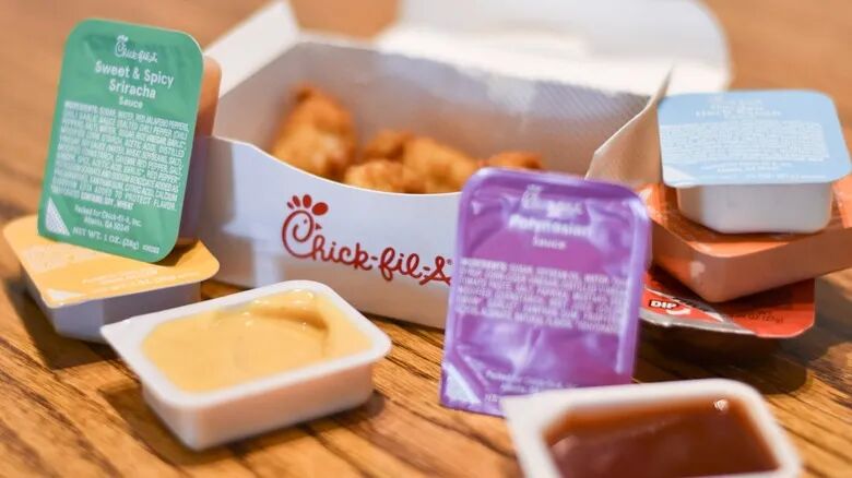 Spicy Chili辣酱 绝对是全场C位!经过百人品测敲定,蒜香浓郁带劲辣,搭配炸鸡堪称灵魂暴击,辣度党直接锁死,经典Chick-fil-A Sauce(烟熏酸甜口)、甜辣是拉差等5款酱料依旧免费畅拿,混搭吃法任你解锁。