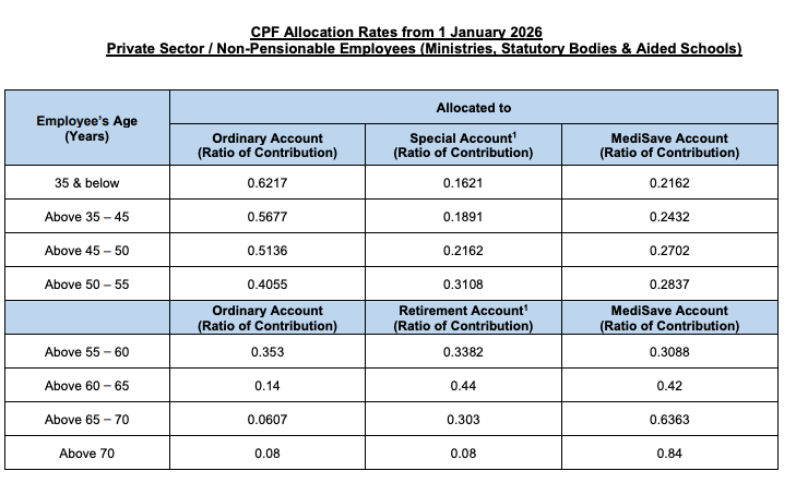 对于年满55岁及以上者,我们还会有一个退休账户(RA),但默认情况下,来自薪水的公积金缴款不会直接存入此账户。