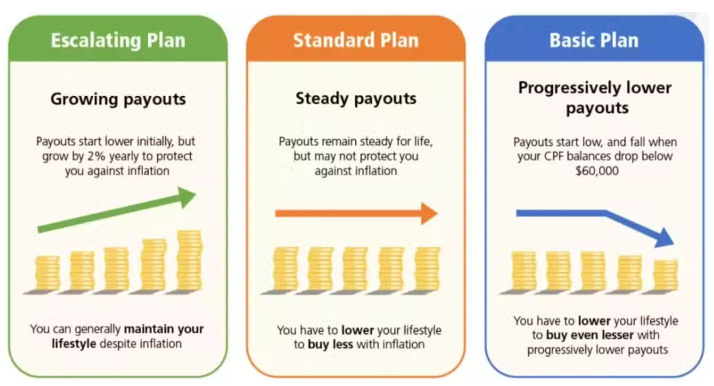 目前,CPF LIFE共有三种计划供会员选择,分别是标准计划(Standard)、基本计划(Basic)和递增计划(Escalating)。