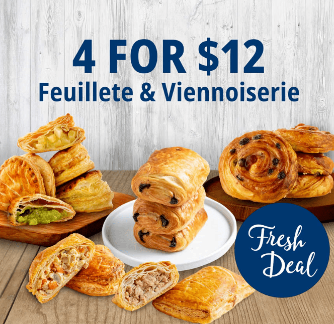 法式甜品控的大大福音来了~新加坡王霸级别的法式面包店Delifrance出优惠了!4个面包仅12新,从招牌黄油羊角面包、苹果面包、咖喱鸡酥饼里选,哪个甜品控看了不心跳加速!