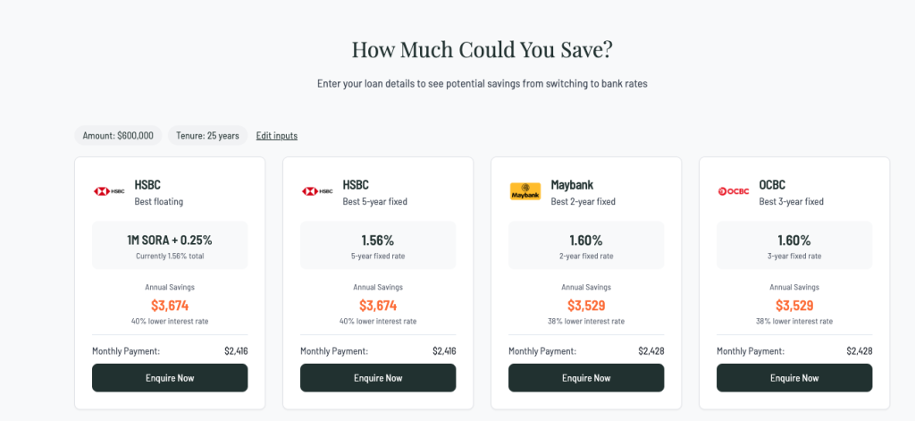通过银行贷款的吸引力主要在于其较低的利率。如果我们采用当前1.6%的固定利率,意味着银行贷款利率比HDB贷款低了约1%。很多银行会提供与SORA或定期存款利率挂钩的优惠利率。银行为了吸引客户,往往会提供有竞争力的“开胃”利率。