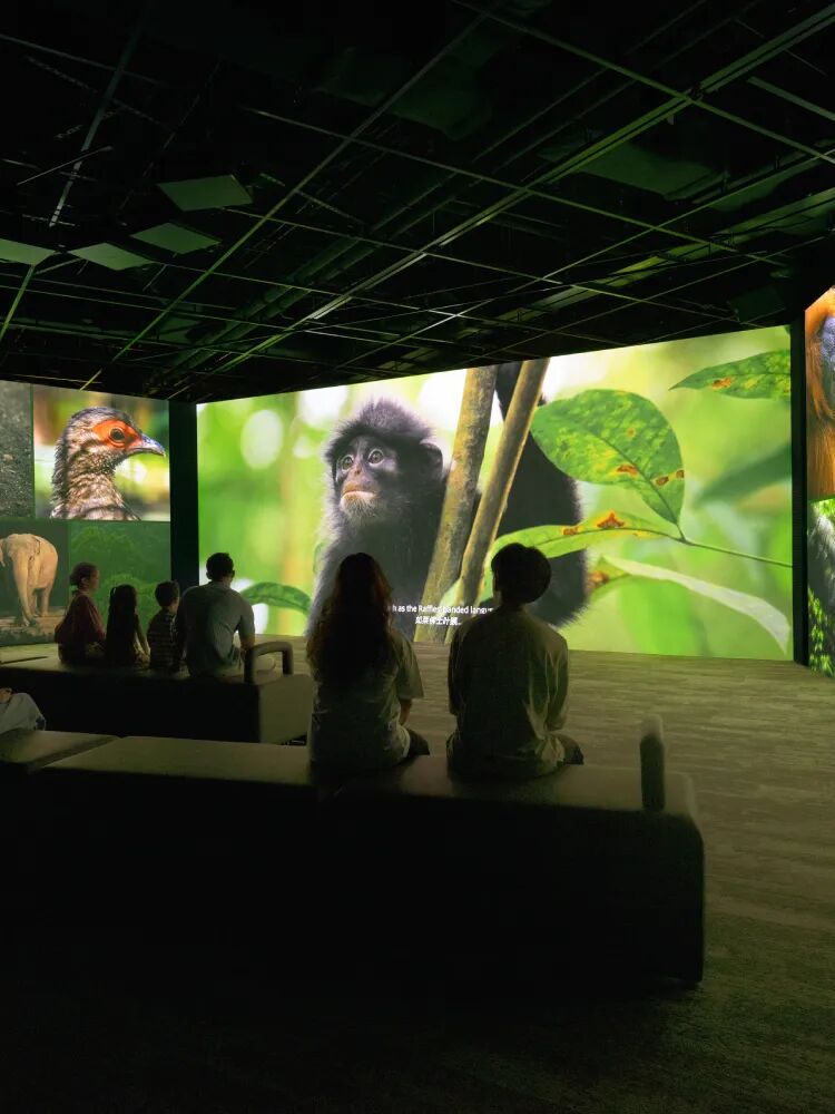走进剧院,沉浸式演出片段将铺满三面墙(从地板到天花板)!预留 15 分钟即可深入了解Mandai野生动物保护区的发展历程、幕后花絮,以及其在该地区开展的保护工作。