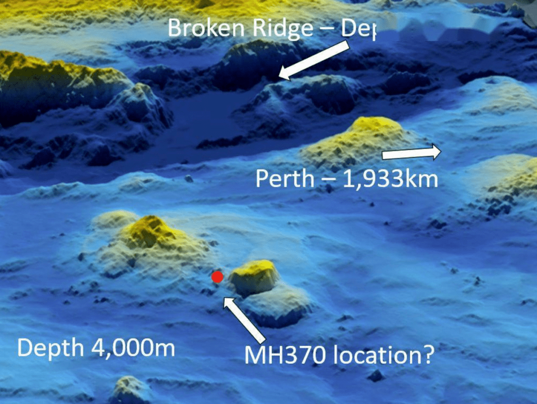 据称,这架已经失联7年的飞机,当时在珀斯以西1993公里的印度洋坠毁,此刻躺在海平面4000米以下,坐标南纬33.177°,东经95.300°。