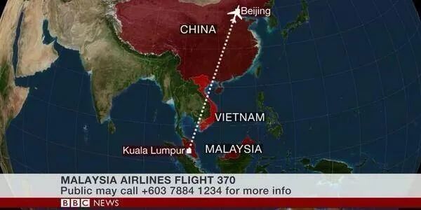 但是在当天凌晨1点20分,飞机在马来西亚跟越南的交界处跟胡志明管控区失联,雷达信号也一同消失。