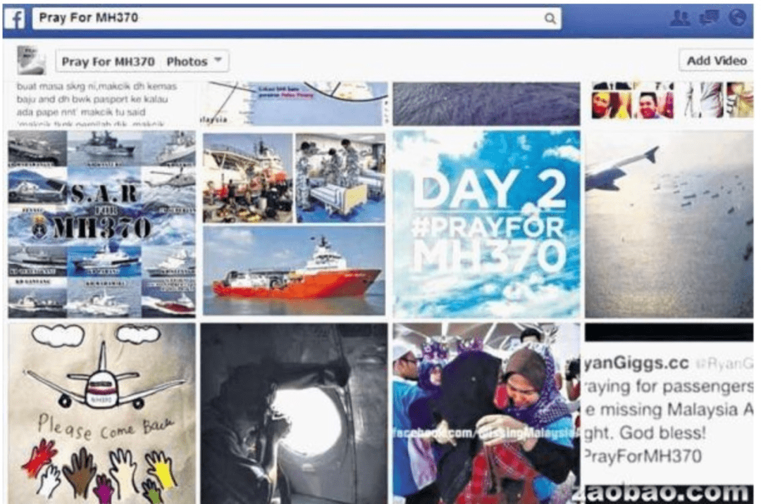 新加坡网友纷纷在社交媒体上发起标签“为MH370祈福”,相关帖子在推特跟脸书流传。