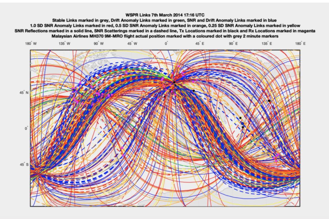 “非常有信心MH370就是在这个位置。我们有来自卫星的大量数据,我们有海洋学,漂移分析,波音公司的性能数据,现在还有一项革命性的跟踪新技术,即弱信号传播(WSPR)。