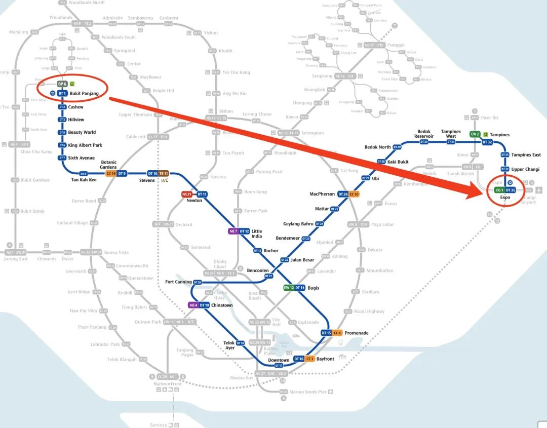 地铁站::武吉班让(Bukit Panjang )-世博会( Expo),34站
