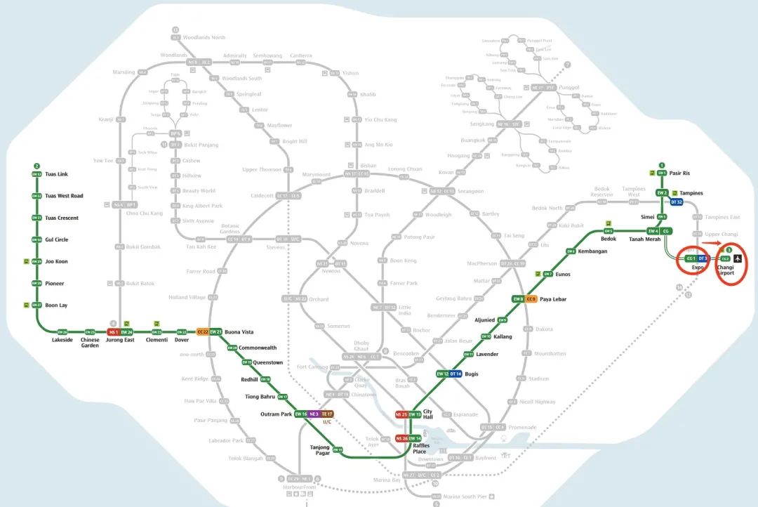地铁站:世博会( Expo)-樟宜机场(Changi Airport),1站