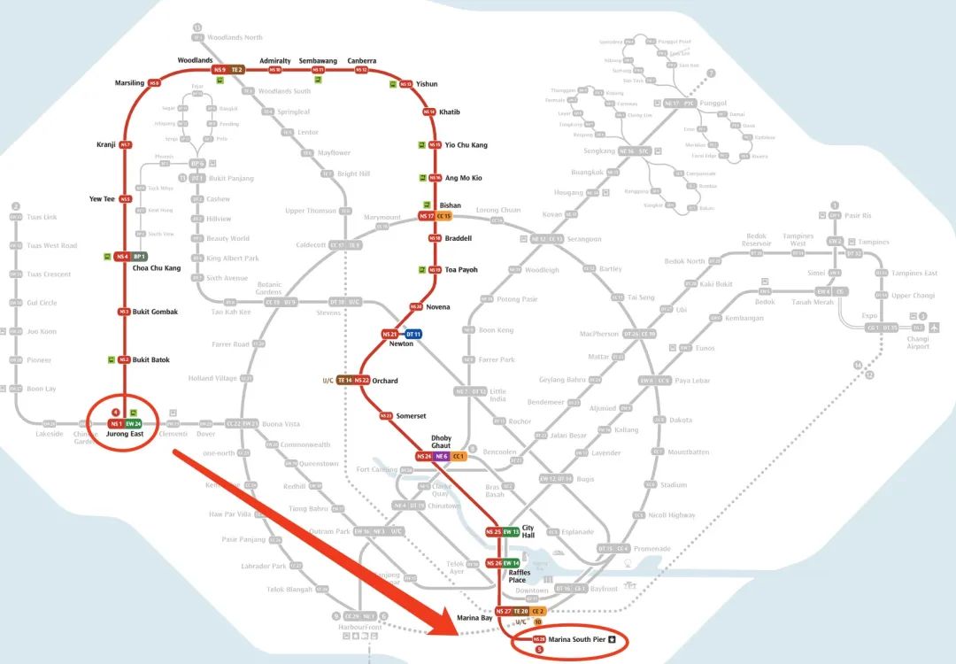 地铁站:裕廊东-滨海南码头(Marina South Pier),27站