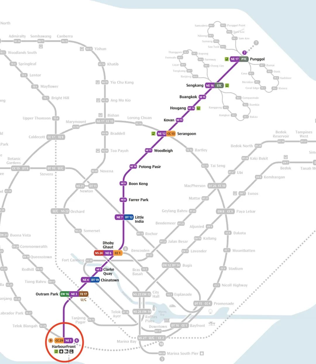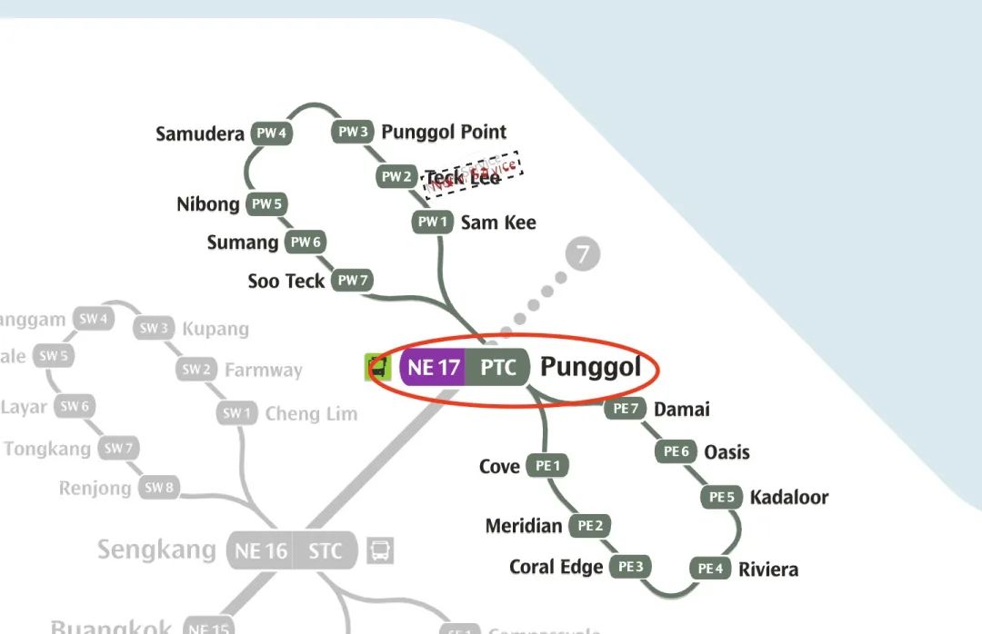 地铁站:港湾-榜鹅(Punggol),17站
