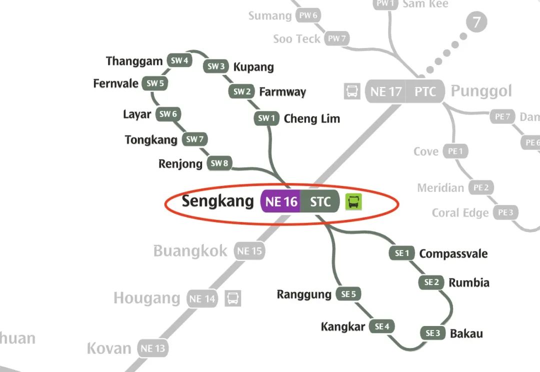 地铁站:榜鹅-盛港(Sengkang),1站