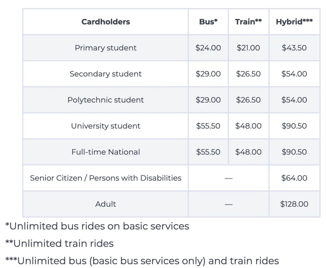 转用月票支付车资。这个对于每天要花很久时间在地铁上的上班族比较适用。月票价格如下↓