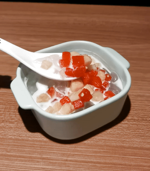 馥郁奶茶,加入些许花椒粉,配合着绵沙细软的红豆,味道刺激上头。