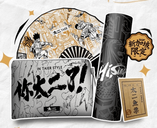 新加坡限定【酸爽上新】礼盒,内含主题插画折扇及杜邦纸手拿包