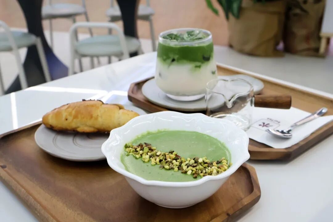 SCAPE 入口内侧的 SuiTok 咖啡馆氛围独特,主打烘焙糕点、抹茶及中式甜点,价格实惠, Ice Matcha Latte 5.5 新元等,适合放松且省钱。
