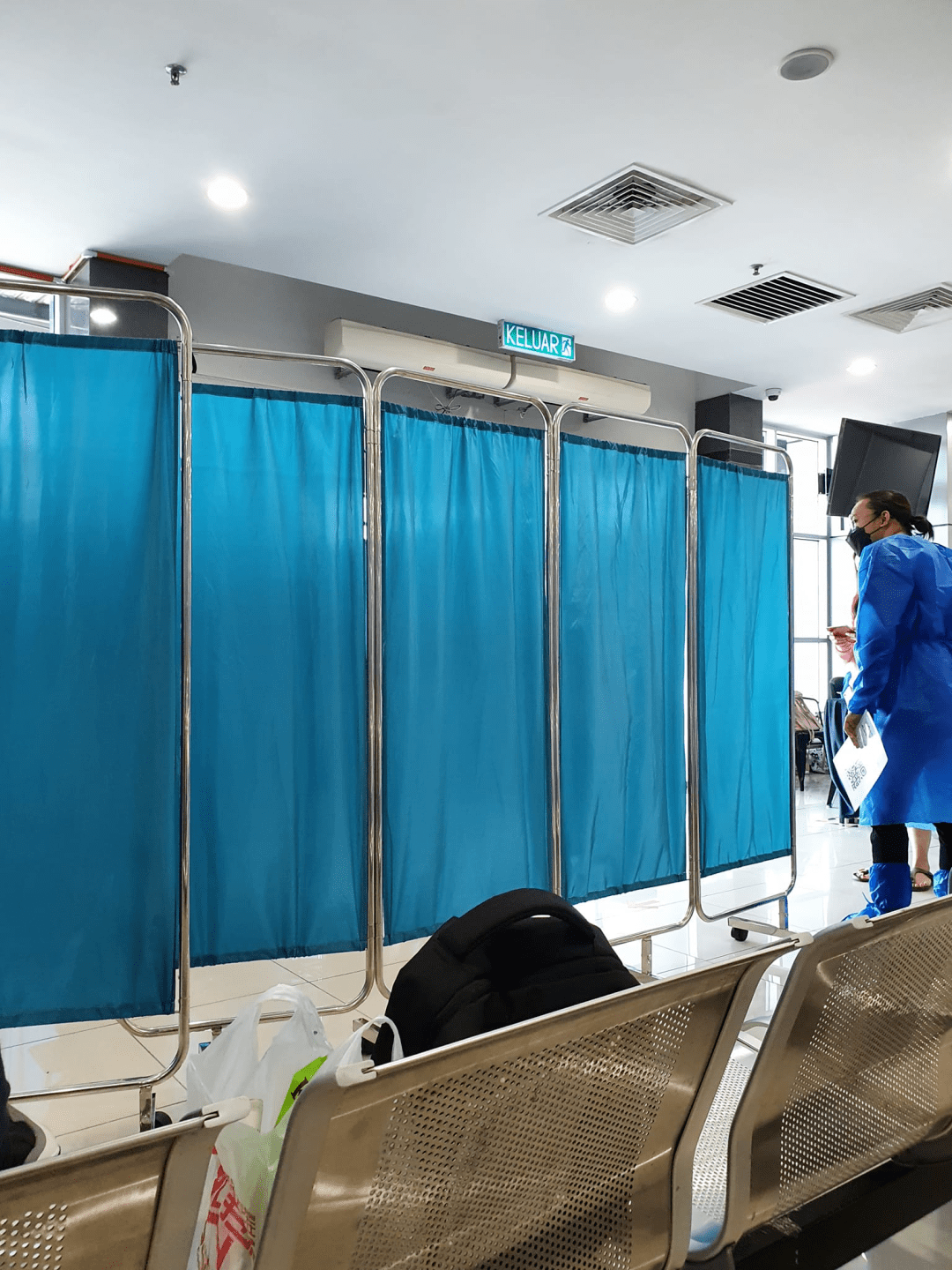 之后,护士给了我两张小贴纸排队进行检测。检测结果相当快,一旦检测结果出炉,我就自由了~