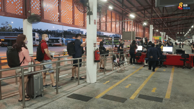 稍后,关卡方面的官员会依照巴士座位号将人叫人上楼通关。所有的VTL柜台都可以使用。