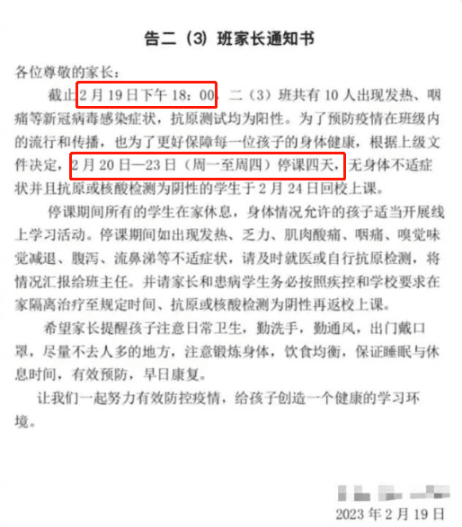 学校按照“乙类乙管”处置预案,将情况报给了疾控部门,并发布了班级停课四天的通知。